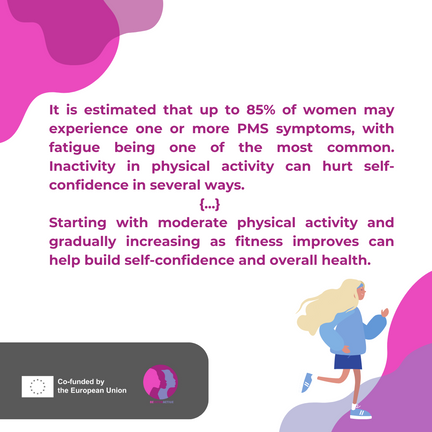 👉It is estimated that up to 85% of women may experience one or more PMS symptoms, with fatigue being one of the most common. Inactivity in physical activity can hurt self-confidence in several ways. First, a lack of physical activity can result in decreased physical fitness, leading to self-doubt and insecurity about one's physical abilities. Furthermore, inactivity can lead to poor mental health, including increased stress, anxiety, and depression, which can hurt self-confidence. It is important to note that the frequency and intensity of physical activity should be adjusted to individual needs and abilities. However, starting with moderate physical activity and gradually increasing as fitness improves can help build self-confidence and overall health.