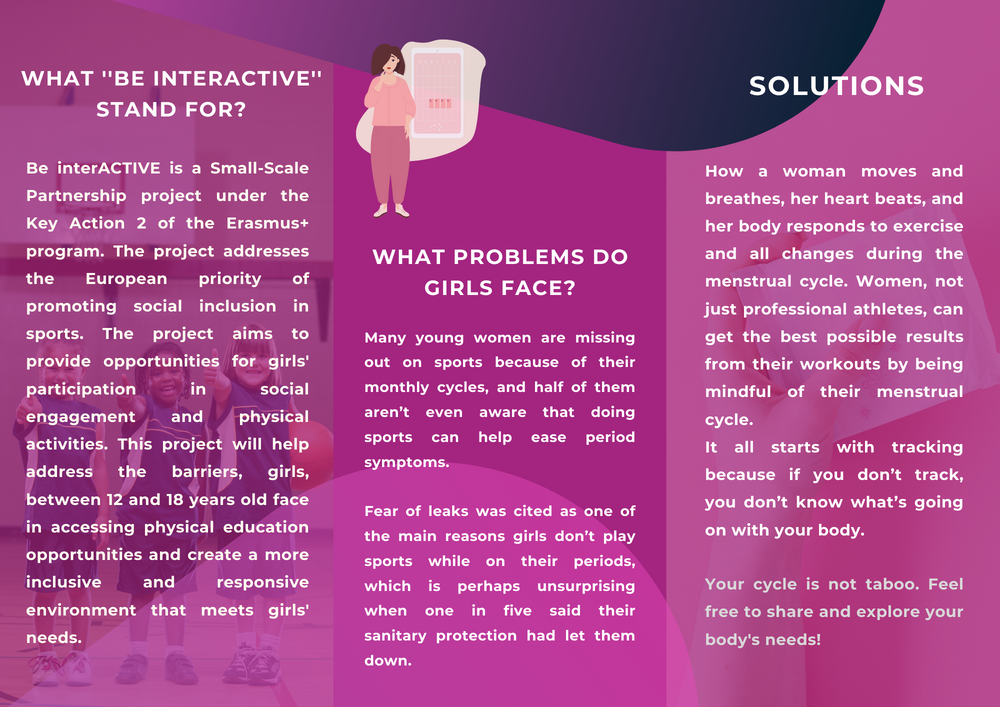 Project ''Be InterACTIVE'' aims to increase the quality of data based on good practices about training and education of young women in Europe, and especially on a national level, through investigating the effect of MC phases and exercise intensity on physically active women aged 12-18. Furthermore, one of the objectives is to investigate already existing and build innovative and inclusive new approaches while adapting them according to the needs of girls involved in physical activities.