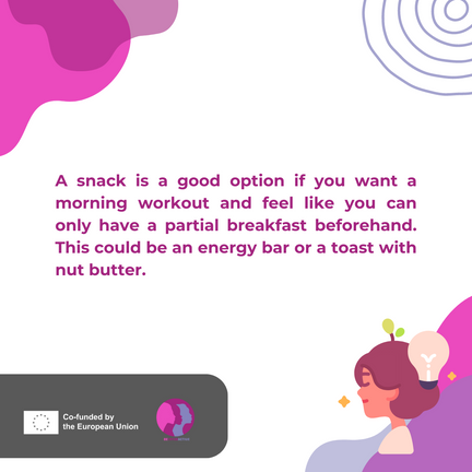 🎯A snack is a good option if you want a morning workout and feel like you can only have a partial breakfast beforehand. This could be an energy bar or a toast with nut butter.